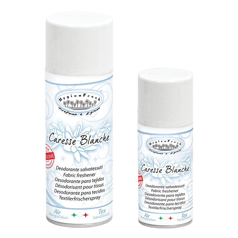 Lõhnaeemaldussprei, millel on spetsiaalne lõhna eemaldav koostis, Caresse Blanche lõhnaga.